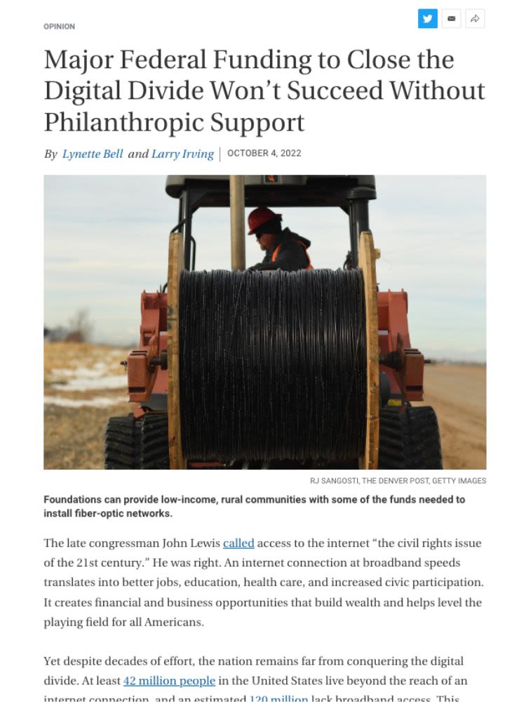 Major Federal Funding to Close the Digital Divide Won’t Succeed Without Philanthropic Support - By Lynette Bell and Larry Irving